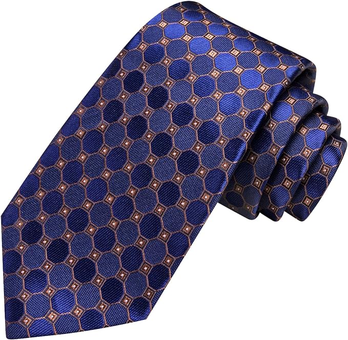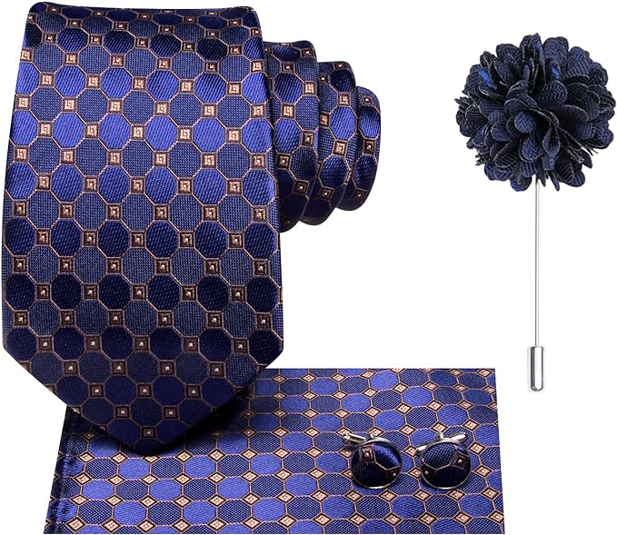 Blue and Brown Paisley Print Necktie Set-LBWH652