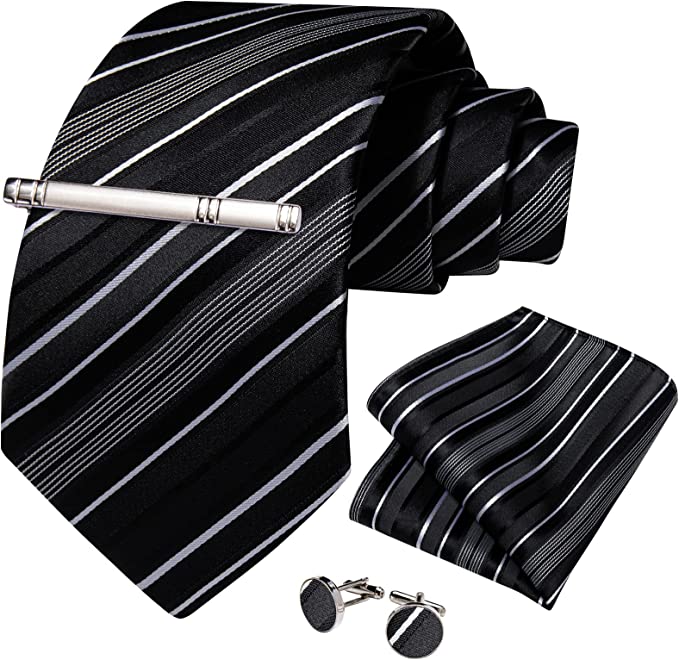 Black Tone on Tone Striped Wedding Necktie Set LBW294
