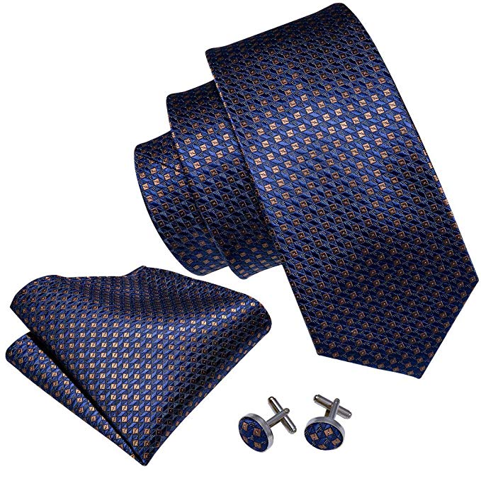 Blue and Black Plaid Striped Necktie Set-DBG1419