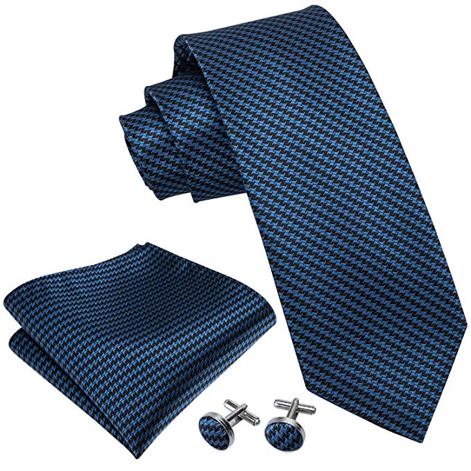 Blue and Black Hounds Tooth Tie Set LBW5087