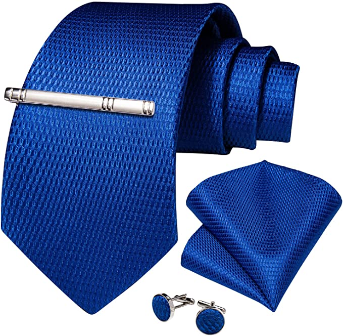 Blue White Plaid Silk Necktie Set-LBWH1442
