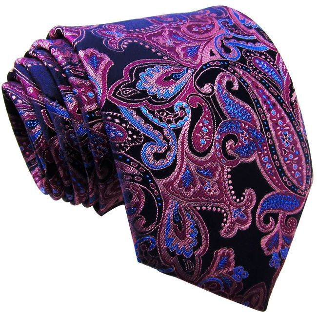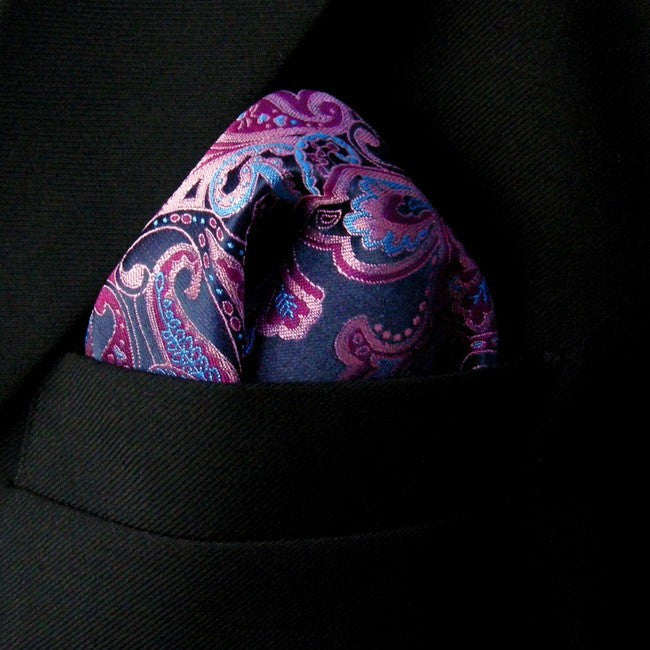 Blue Pink Paisley Silk Necktie Set JXPQ15