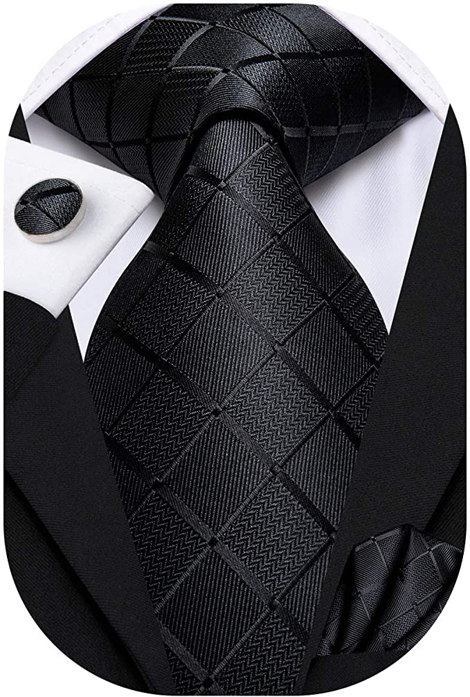 63" Extra Long Black Tone on Tone Necktie Set-LBWH742XL