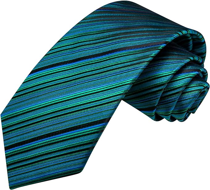 Teal Green Black Stripe Necktie Set-LBWH1447