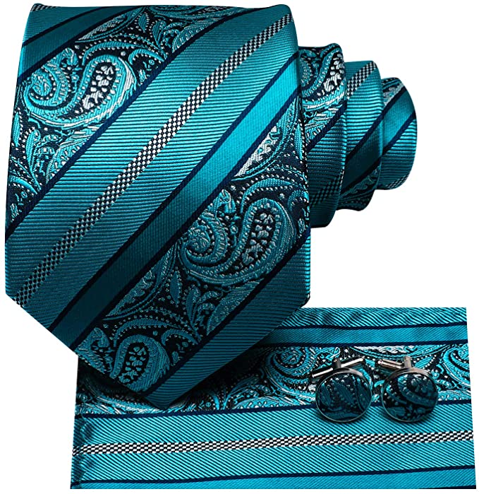 Navy Blue Brown White Paisley Necktie Set-DBG765
