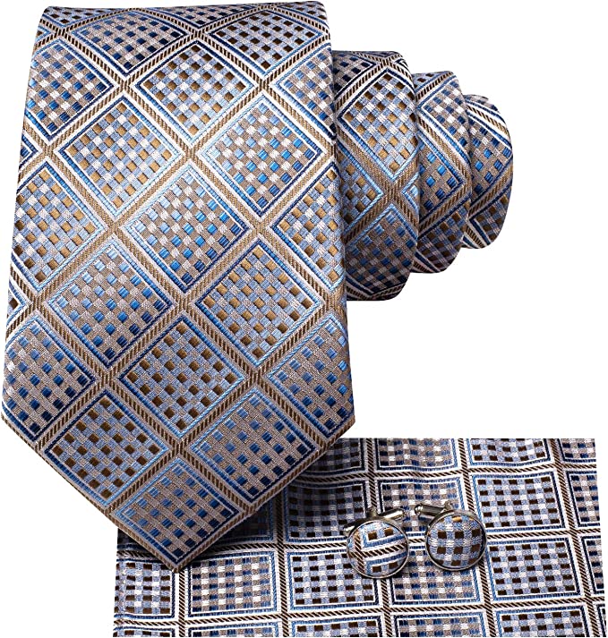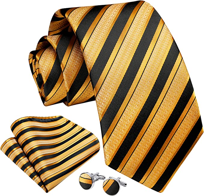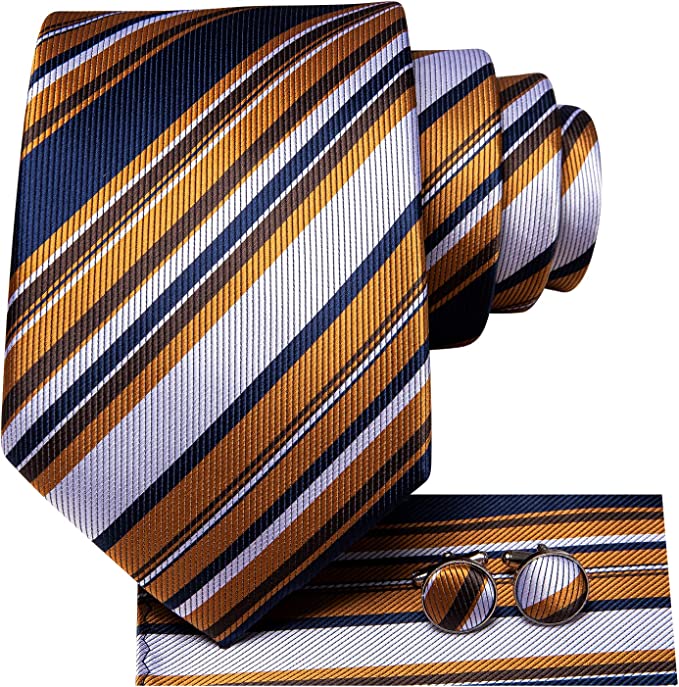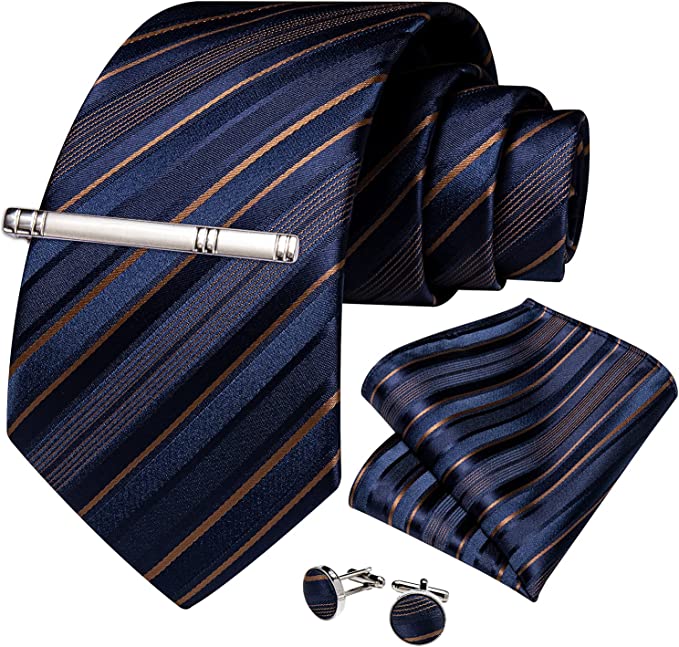 New Navy Blue and Brown Stripe Necktie Set-DBG934