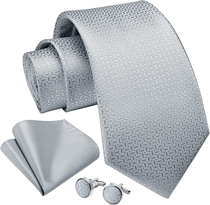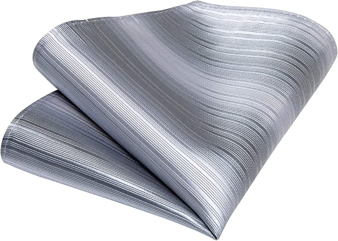 Silver Grey Solid Stripe Necktie Set-DBG940