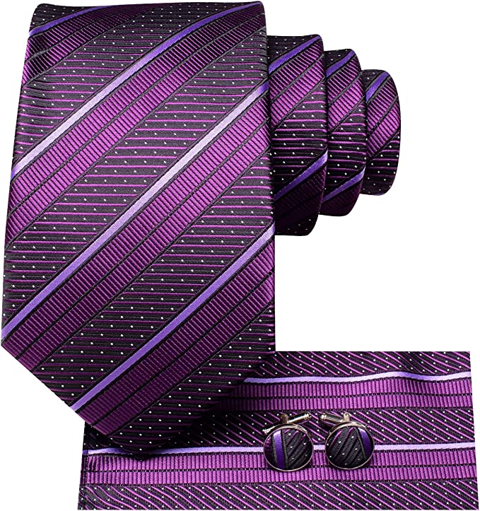 Lavender Purple Black Stripe Necktie Set-DUB907