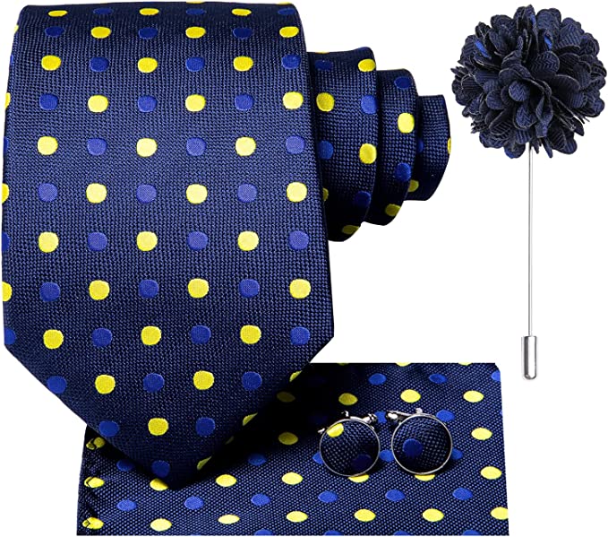 New Blue and Yellow Polka Dot Necktie Set-DUB955