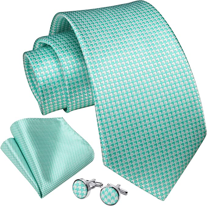 New Tiffany Blue and White Wedding Necktie Set-HDNE57