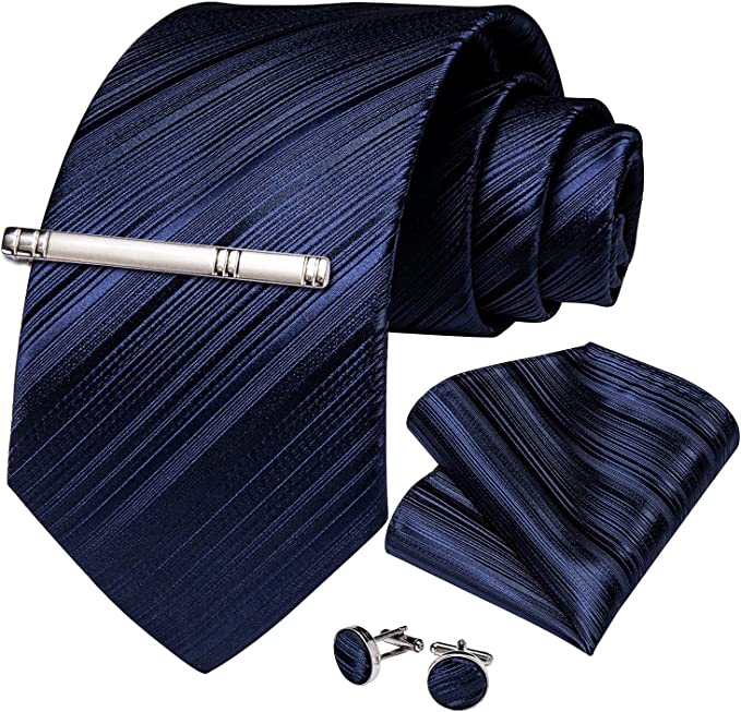 New Navy Blue Stripe Silk Necktie Set-DBG1048