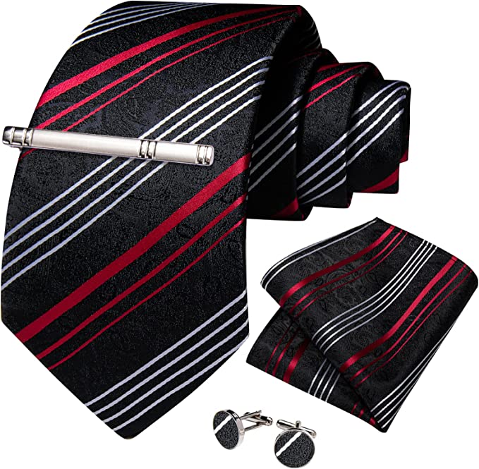 New Blue Black Brown Stripe Necktie Set-LBW1027