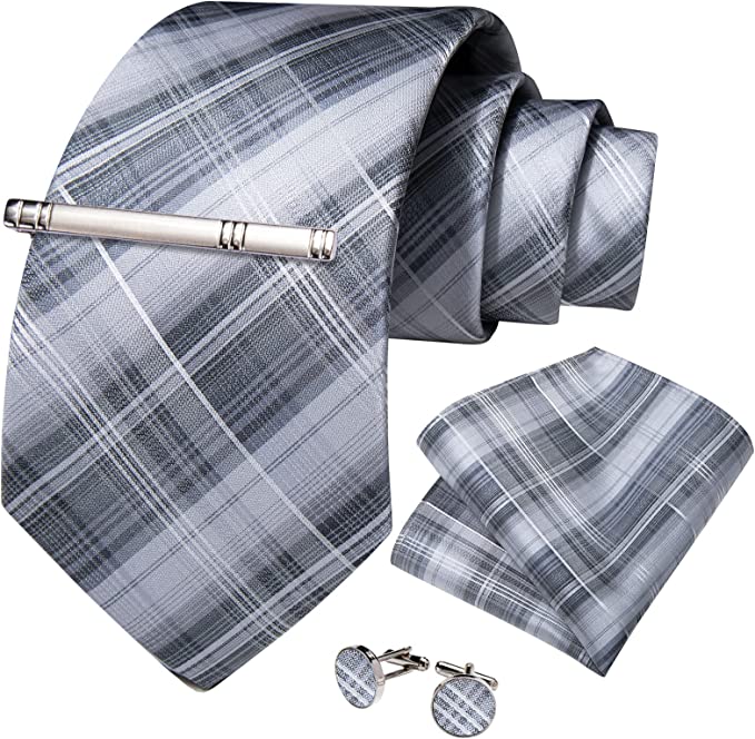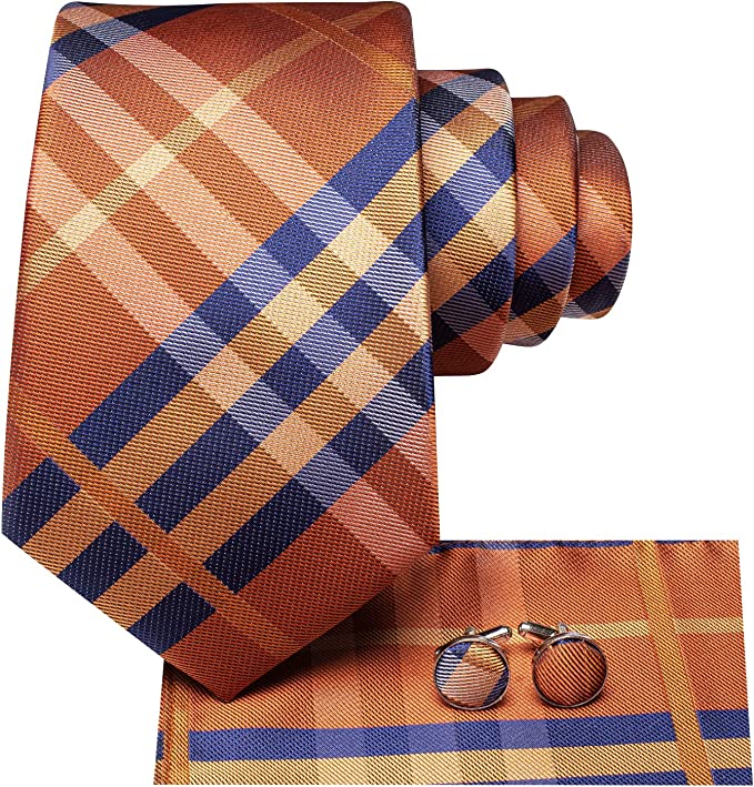 New Orange and Blue Plaid Necktie Set-LBWH973