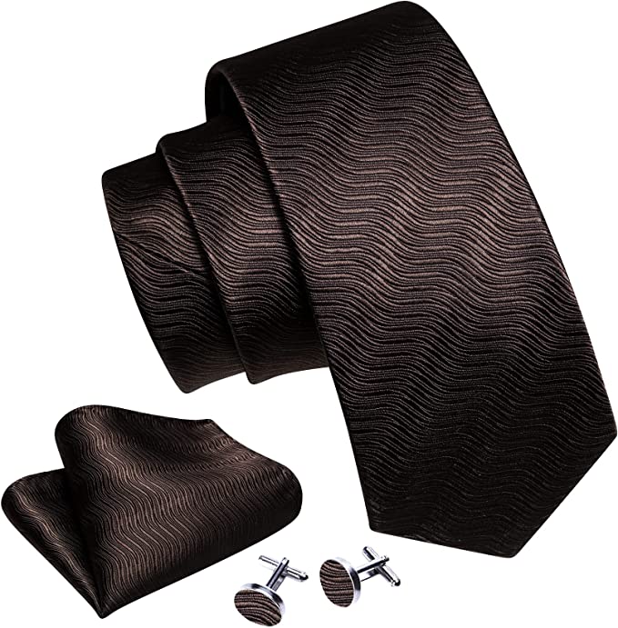 New Chocolate Brown Wave Necktie Set-LBW1040