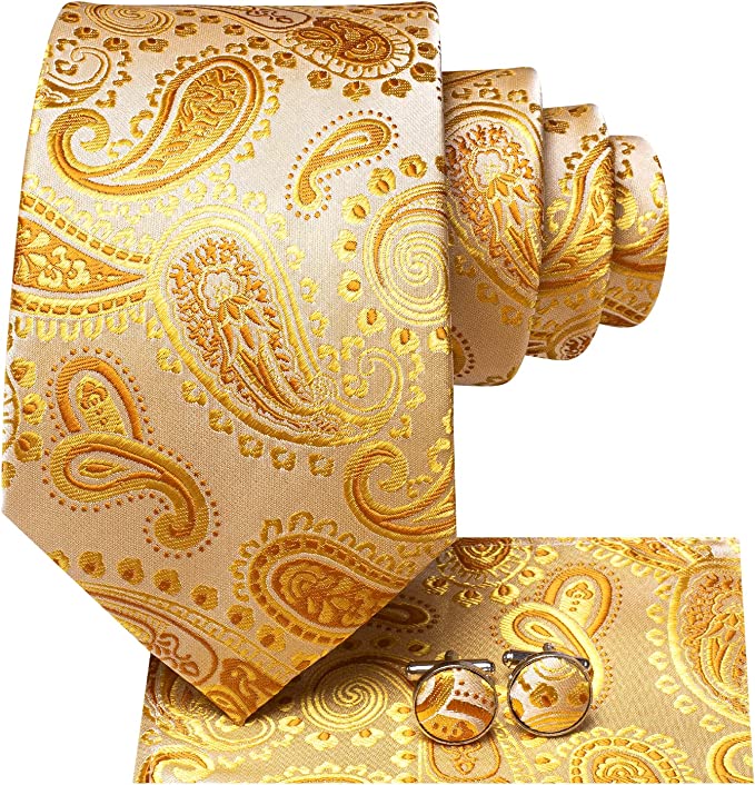 New Orange Yellow Paisley Necktie Set-LBWH978