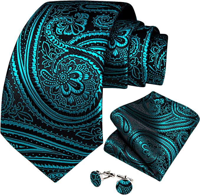 New Green and Blue Stripe Necktie Set-LBWY1084