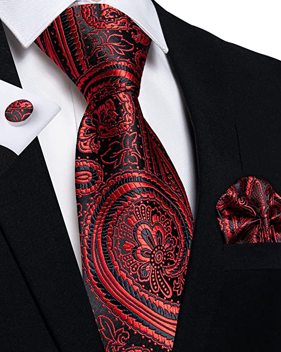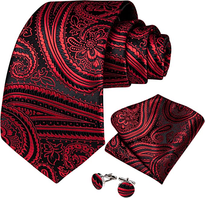 Cranberry and Black Paisley Silk Necktie Set-DBG1111