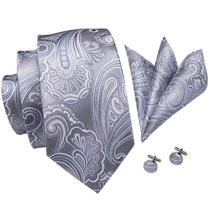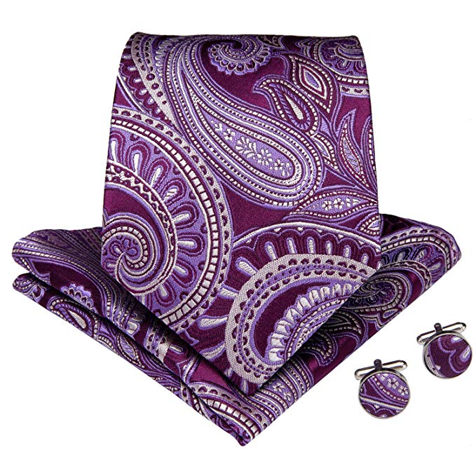 Purple and Grey Silk Paisley Necktie Set-DBG366