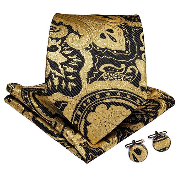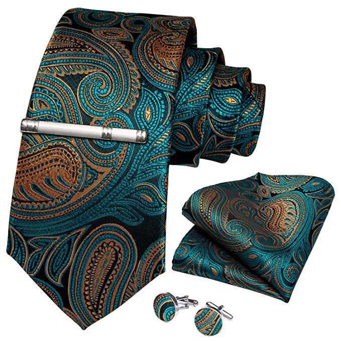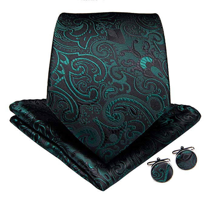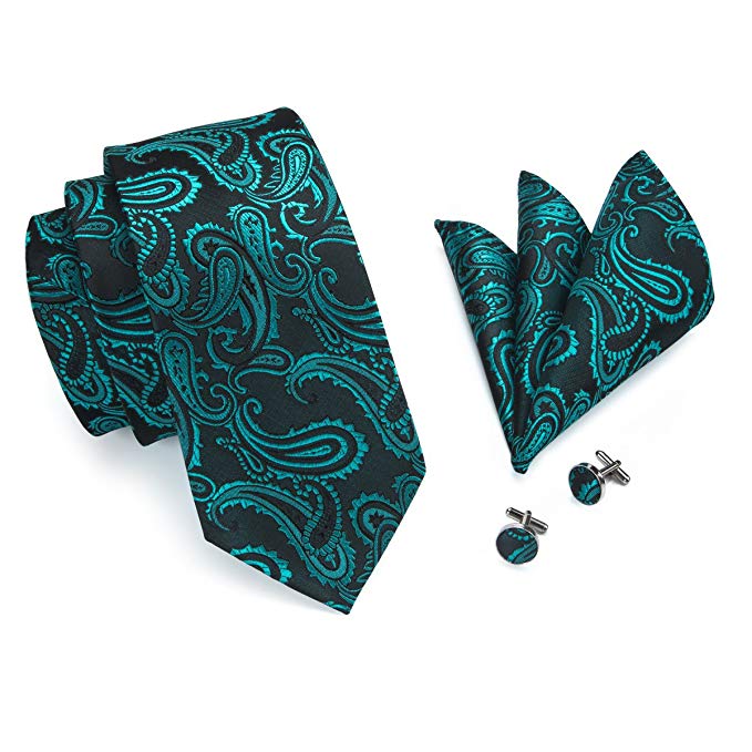Turquoise and Black Silk Piasley Necktie Set-DBG385