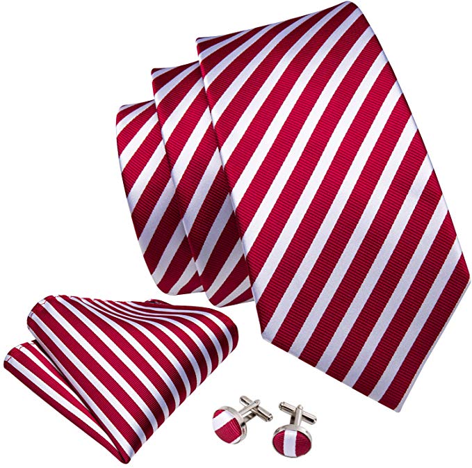 Thin Red and White Striped Silk Necktie Set-LBW542