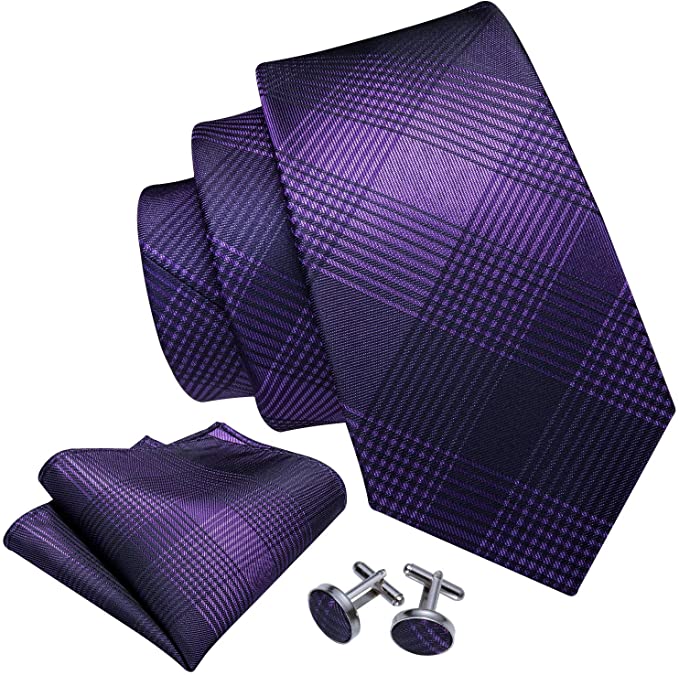 Purple Blue Black Necktie Set-LBW565