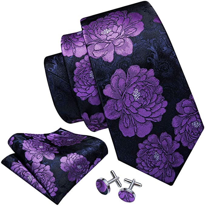 Purple and Black Silk Necktie Set-DUB580