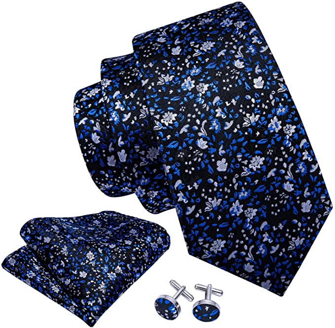 Blue Floral Silk Necktie Set-LBW568