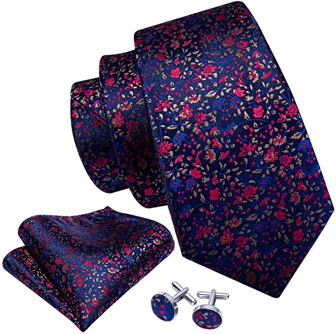 Blue Red Gold Floral Silk Necktie Set-LBW570