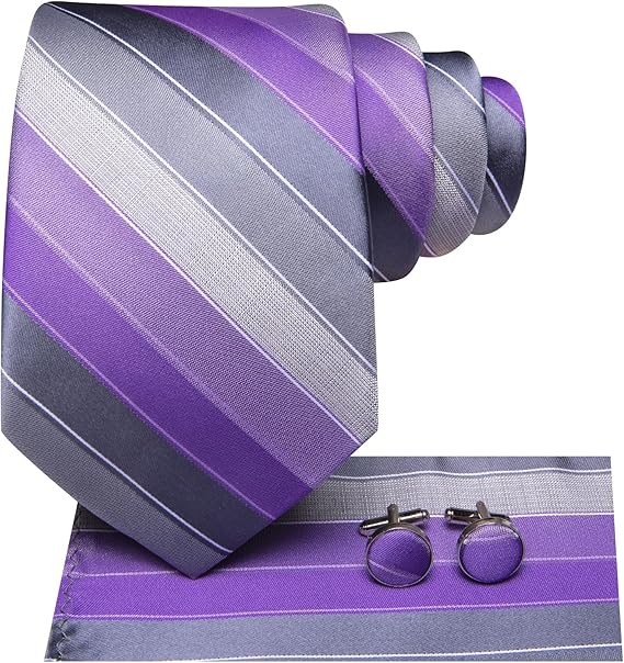 Purple Grey White Stripe Necktie Set-DUB1557
