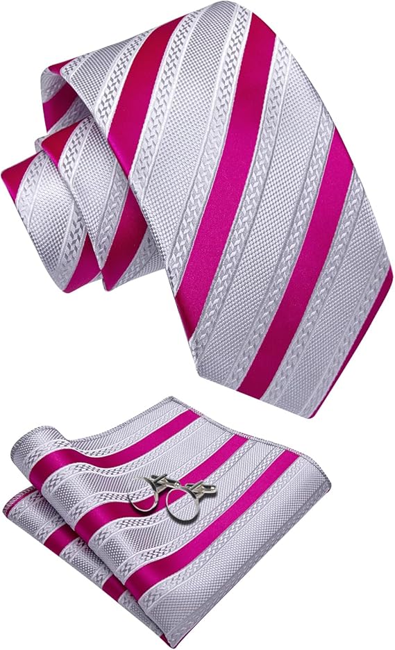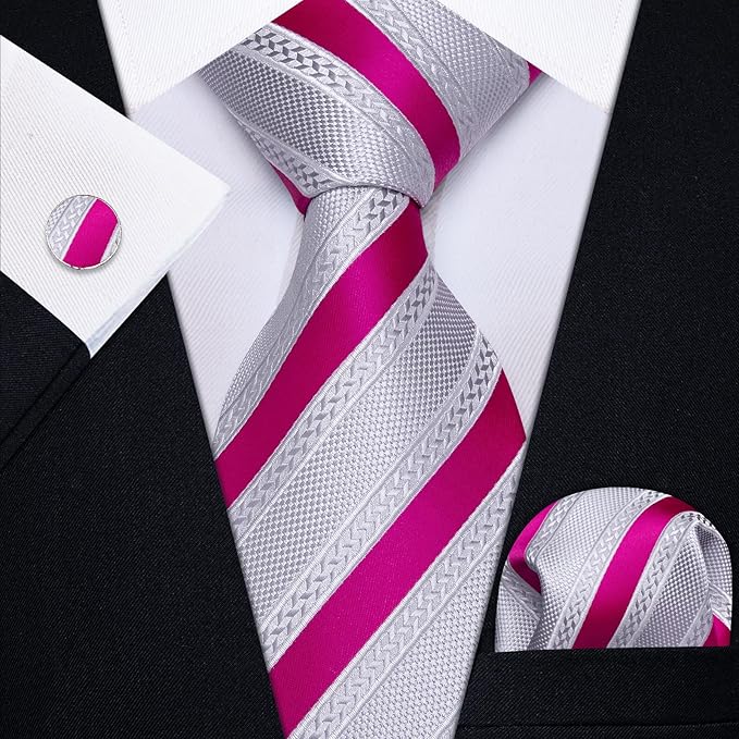 Silver and Pink Silk Necktie Set-JYTS46