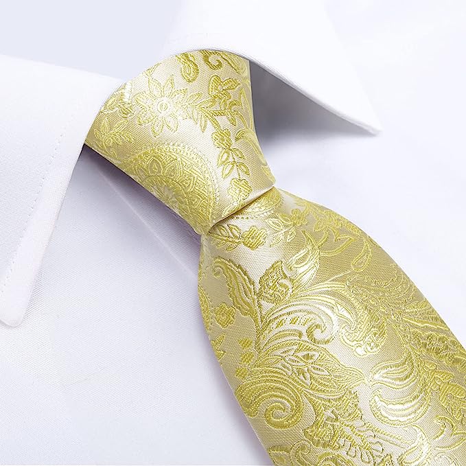 Canary Yellow Paisley Necktie Set-DBG1339