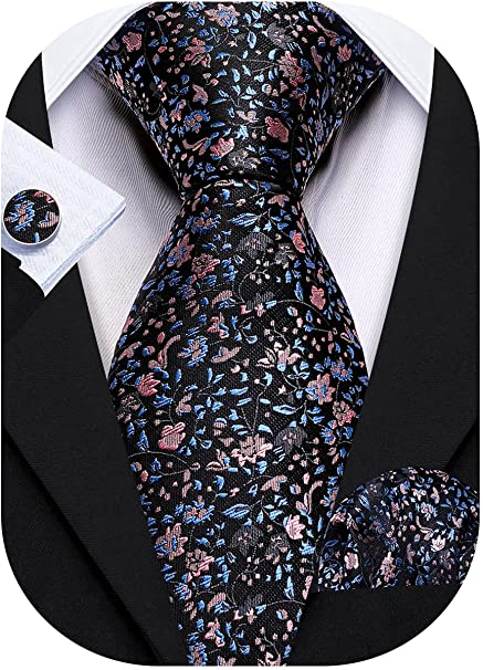 Blue Pink Black Floral Necktie Set-LBW1322