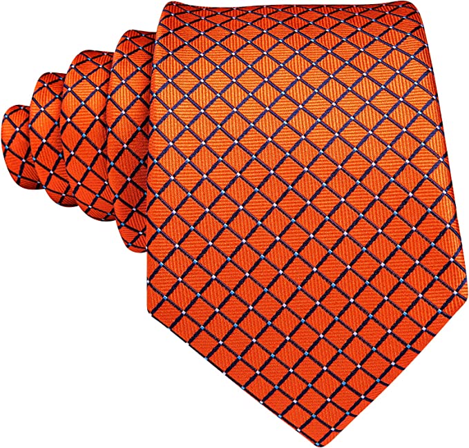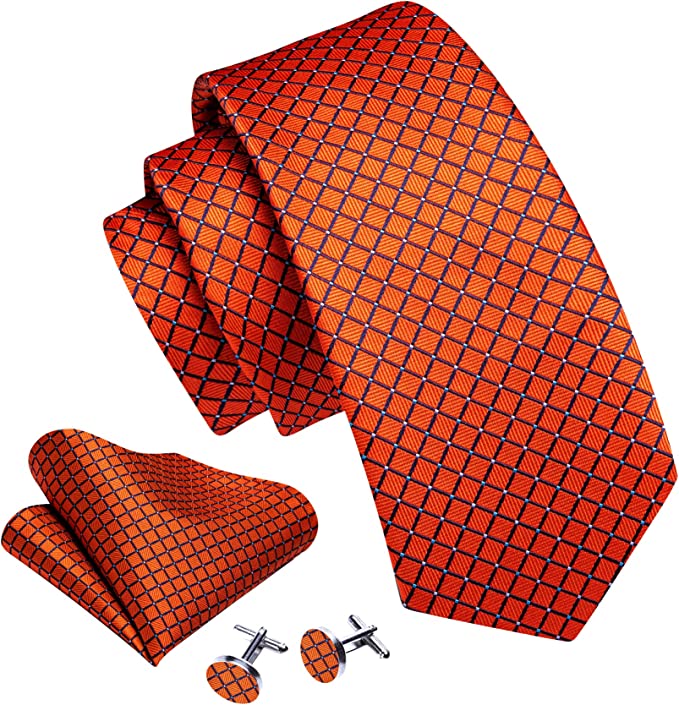 New Orange Plaid Silk Necktie Set-LBW1330