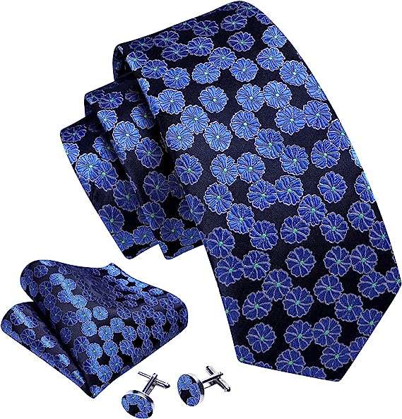 Blue Flower Pattern Necktie Set-LBW1343