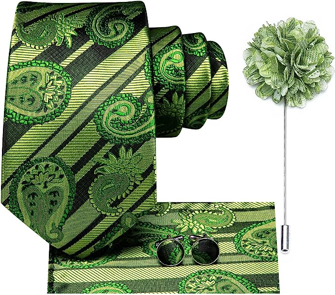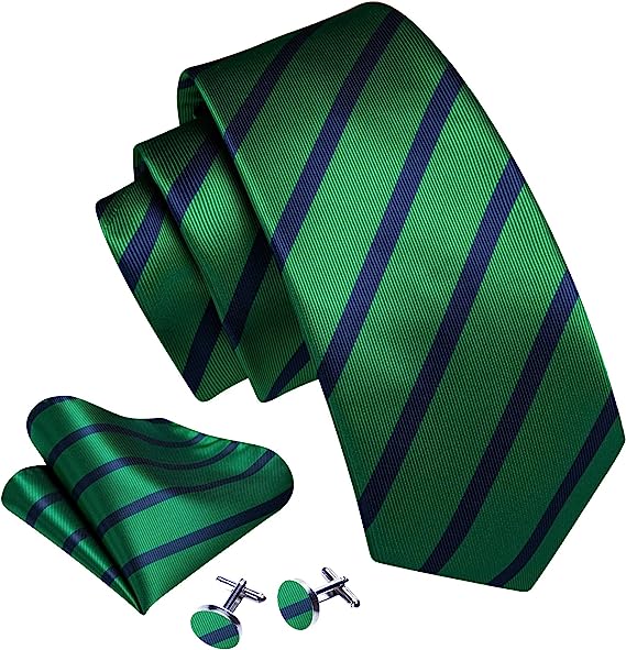 Green and Blue Striped Necktie Set-LBW1344