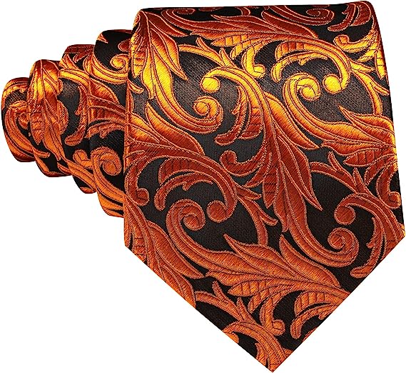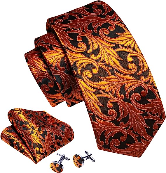 Gold Orange Silk Necktie Set-LBW1350