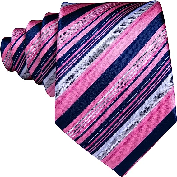 Pink Blue Grey Striped Silk Necktie Set-LBW1353
