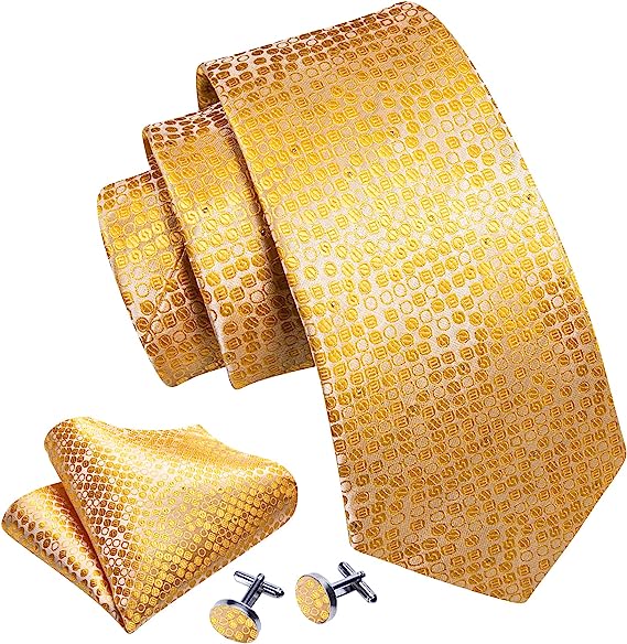 Gold Yellow Dots Necktie Set-LBW1354
