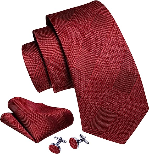 Maroon Red Silk Necktie Set-LBW1363