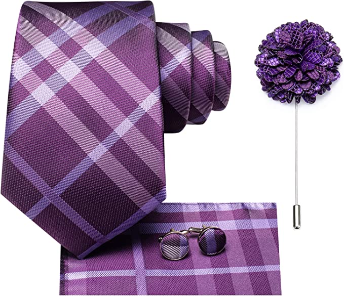 Purple Check Silk Necktie Set-LBWH1334