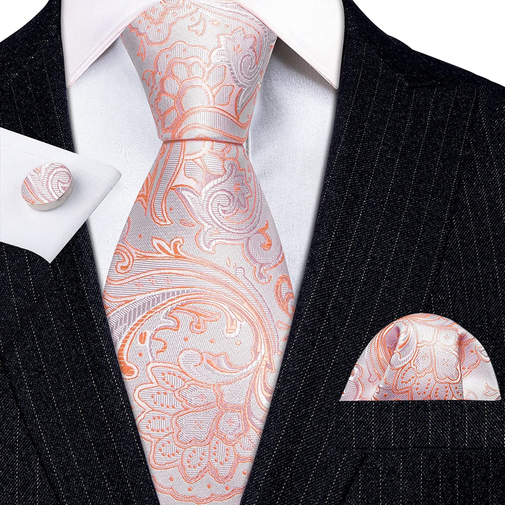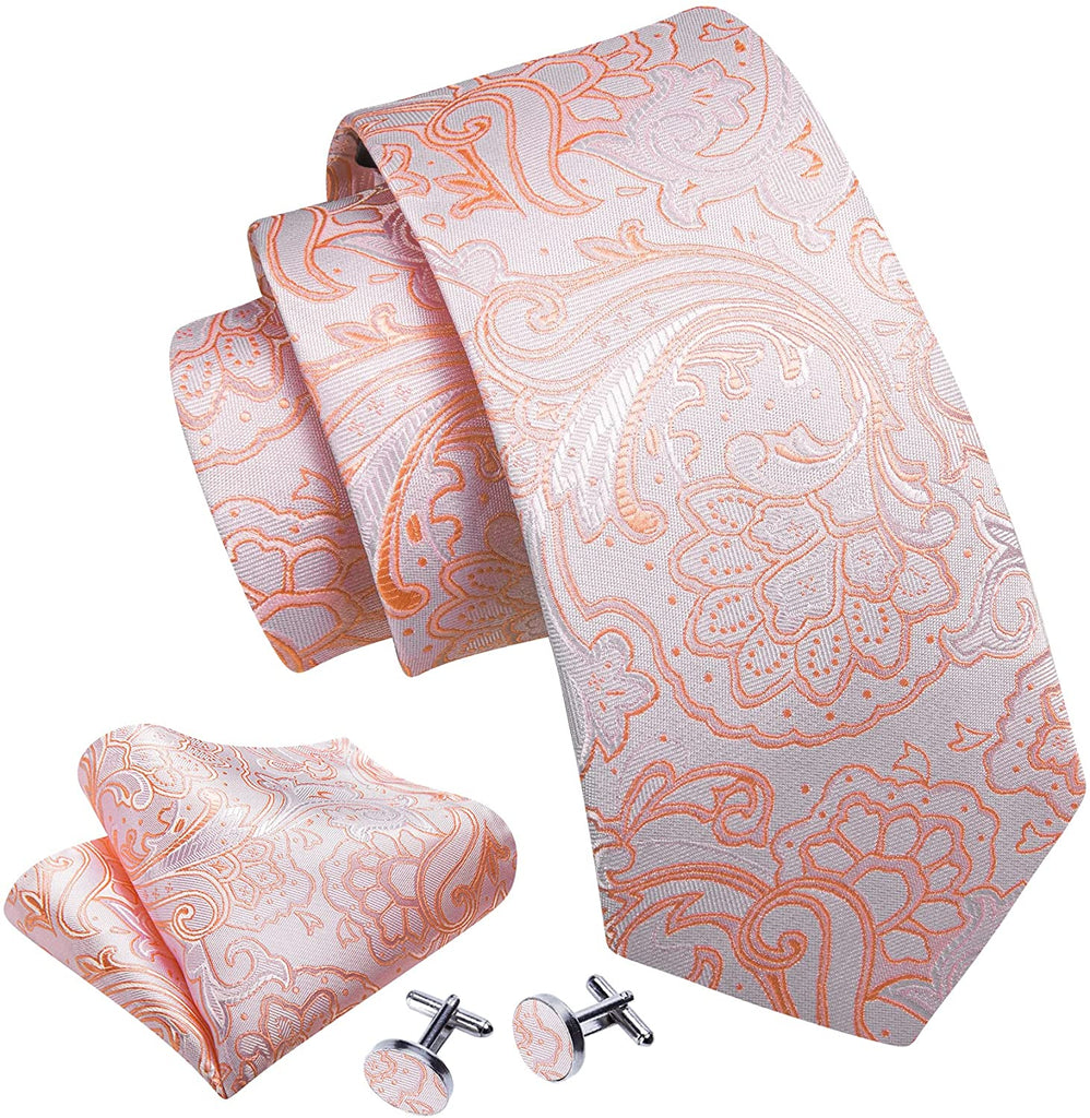 Pink and Orange Paisley Necktie Set-LBW1239