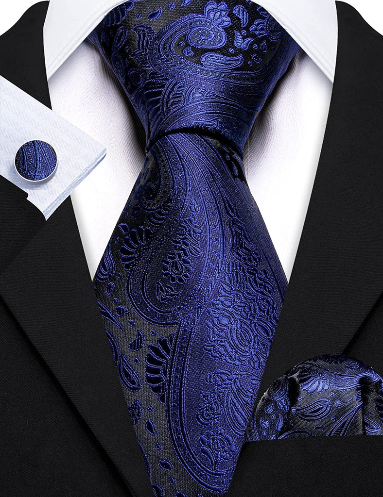 Dark Blue and Black Paisley Necktie Set-LBW1243