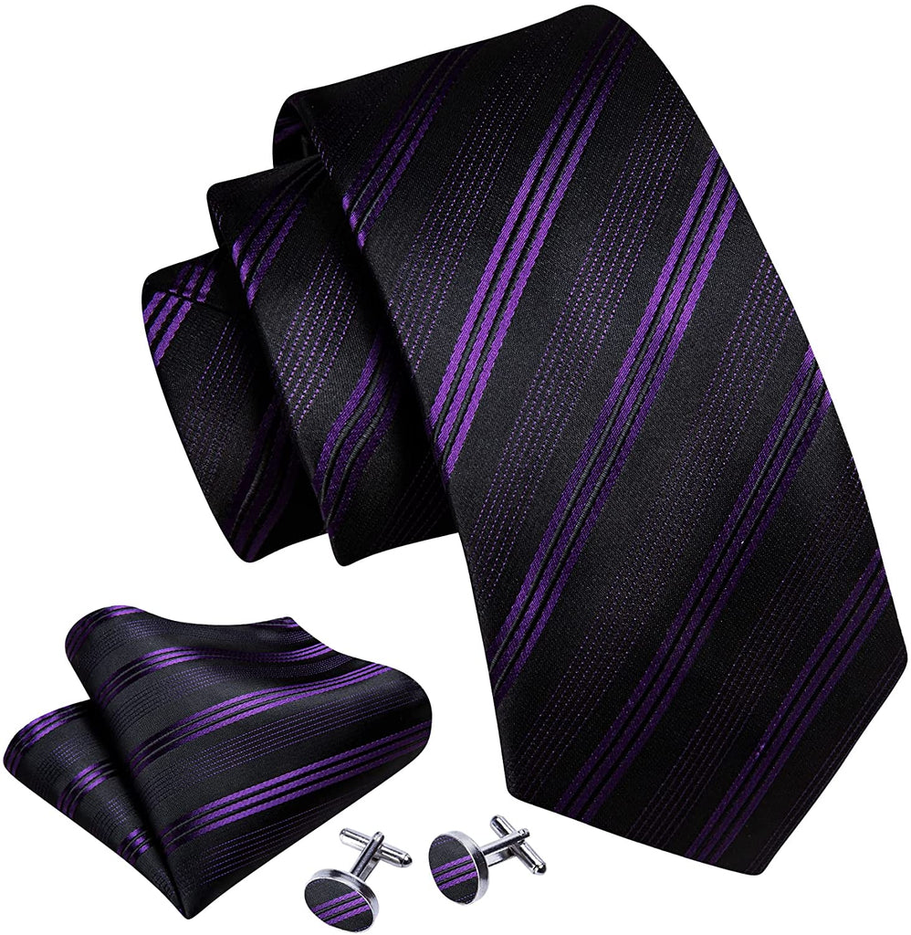 Black and Purple Striped Silk Necktie Set-LBW1249