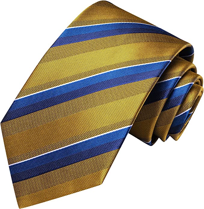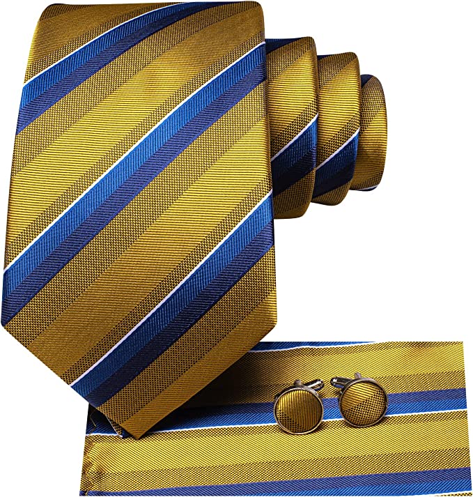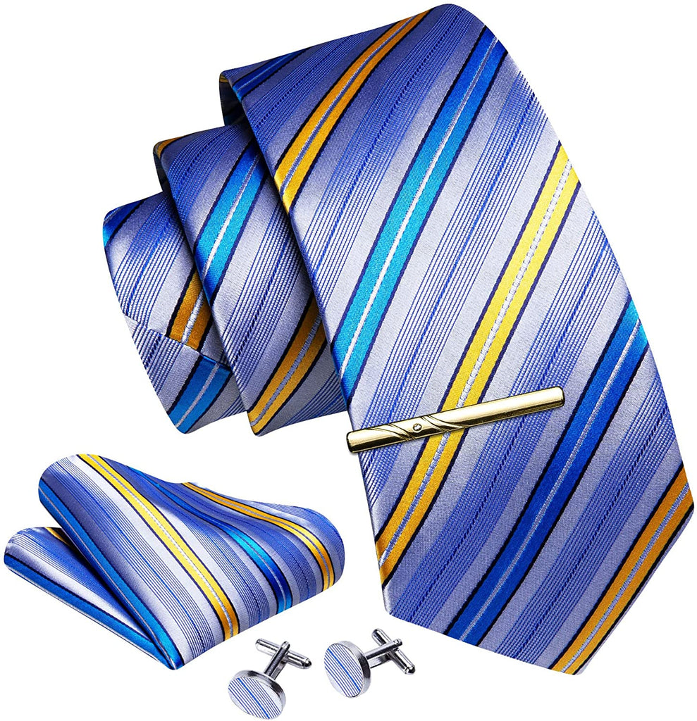 Gold and Blue Striped Silk Necktie Set-LBWH1220