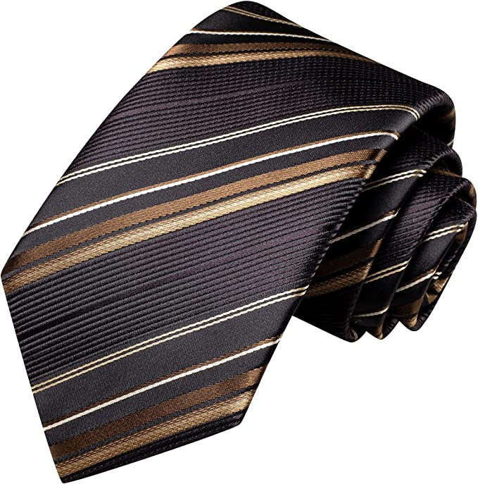 Brown Beige Khaki Striped Silk Necktie -LBWH1211