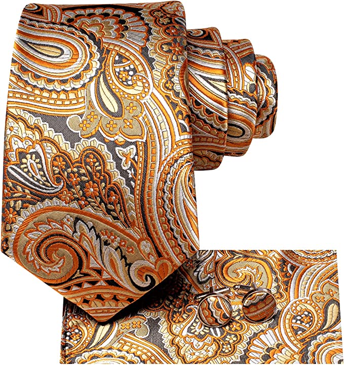 Golden Orange Paisley Necktie Set-LBWH1215