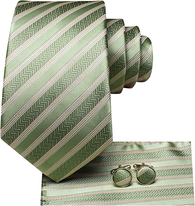 Oliver Green Striped Necktie Set-LBWH1224