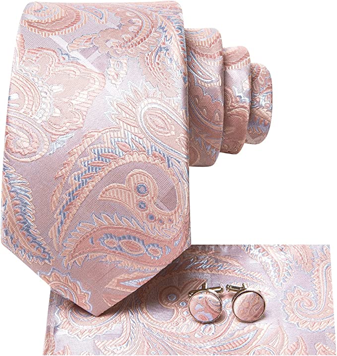 Blush Pink Paisley Wedding Necktie Set-LBWH1231