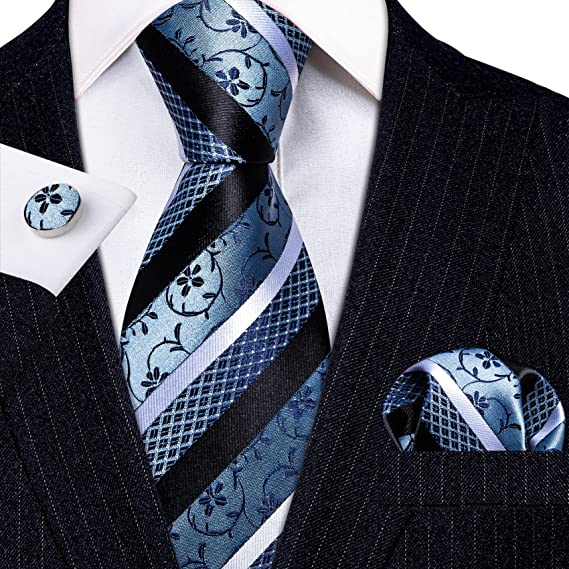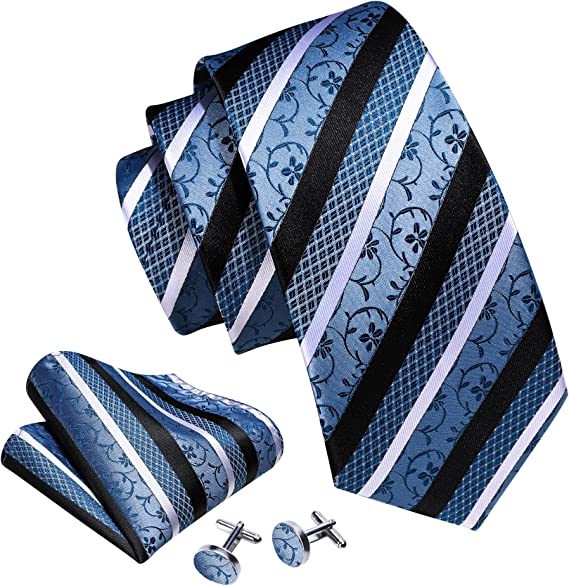 Blue Black White Stripe Necktie Set-LBWY1274