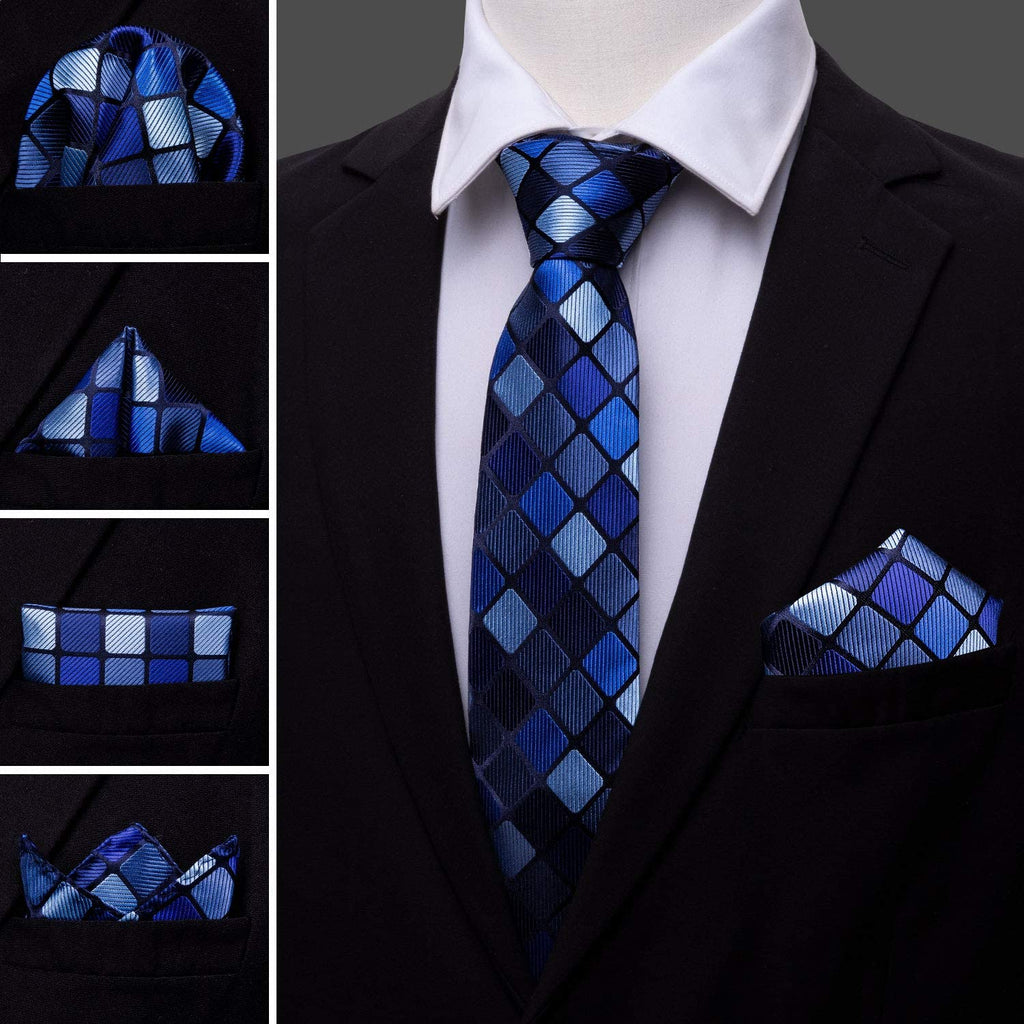 Blue Check Silk Necktie Set-LBWY1288